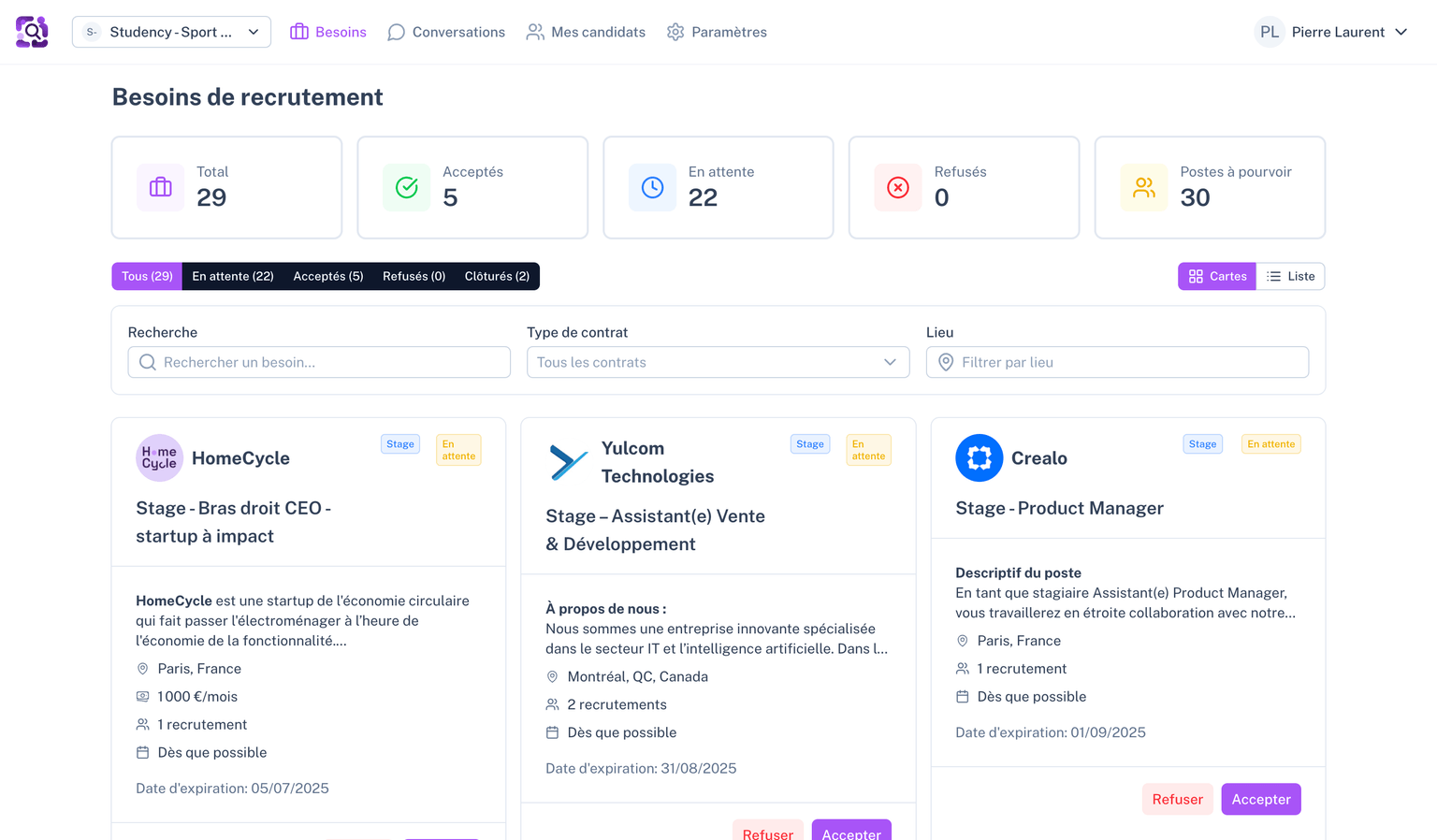 Centralisez vos besoins RH, SchoolDetection identifie les meilleurs prestataires et les diffuse pour vous.